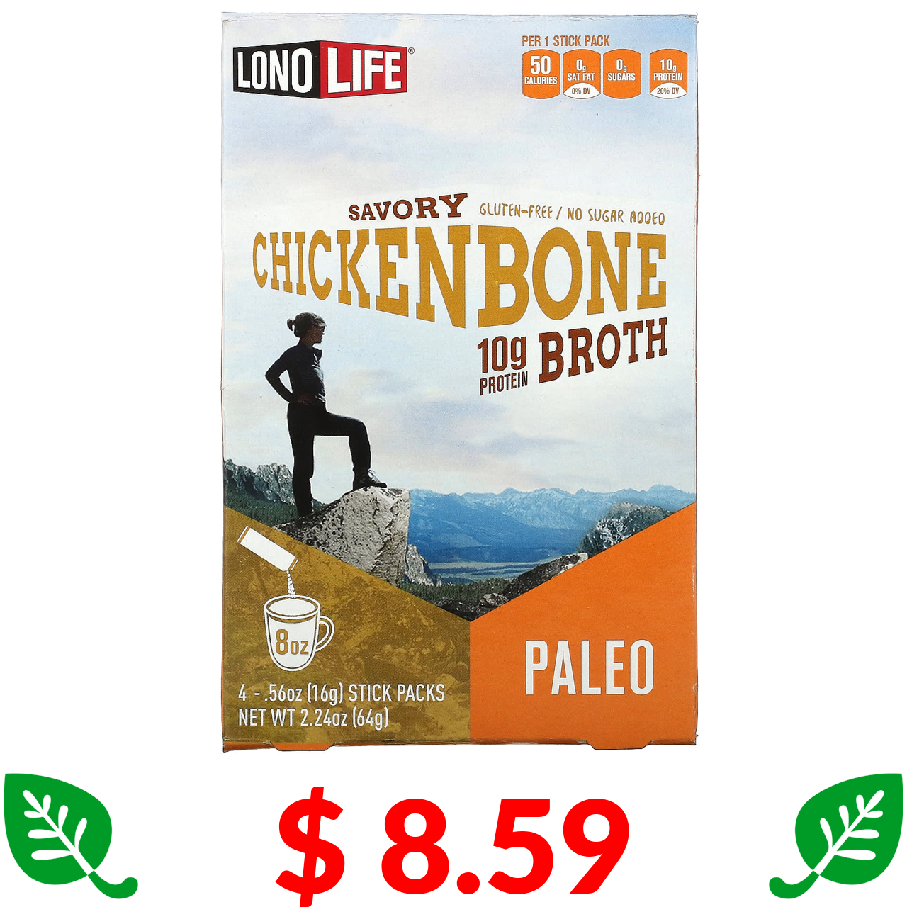 $ 8.59 Lonolife, Broth, Chicken Bone, Paleo, 4 Stick Packs, .56 oz (16 g) Each