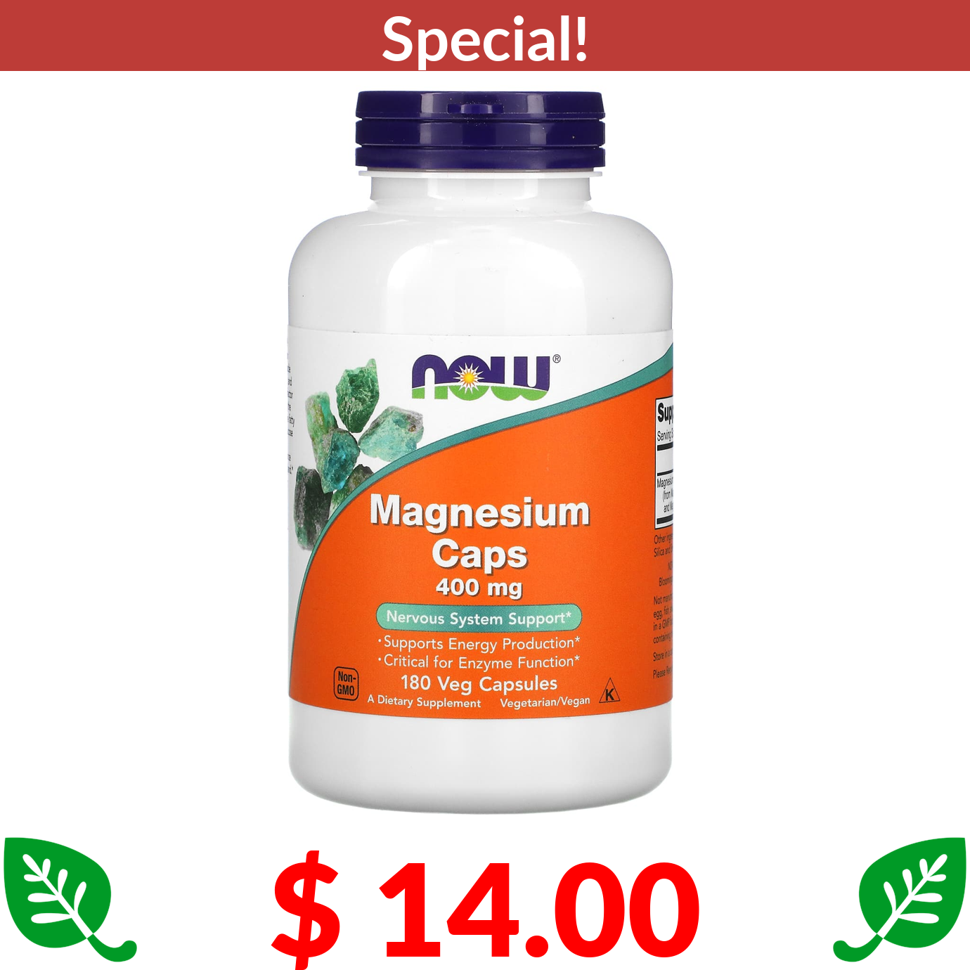 $ 14.00 NOW Foods, Magnesium Caps, 400 mg, 180 Veg Capsules