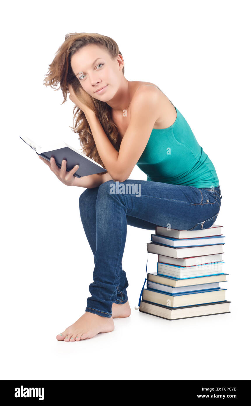Женщина сидит на книгах 143 фото