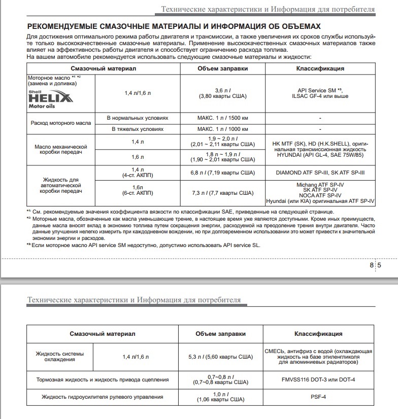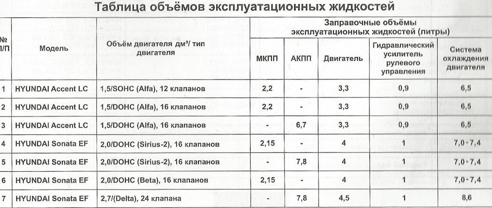 Заправочные объемы солярис 116 фото