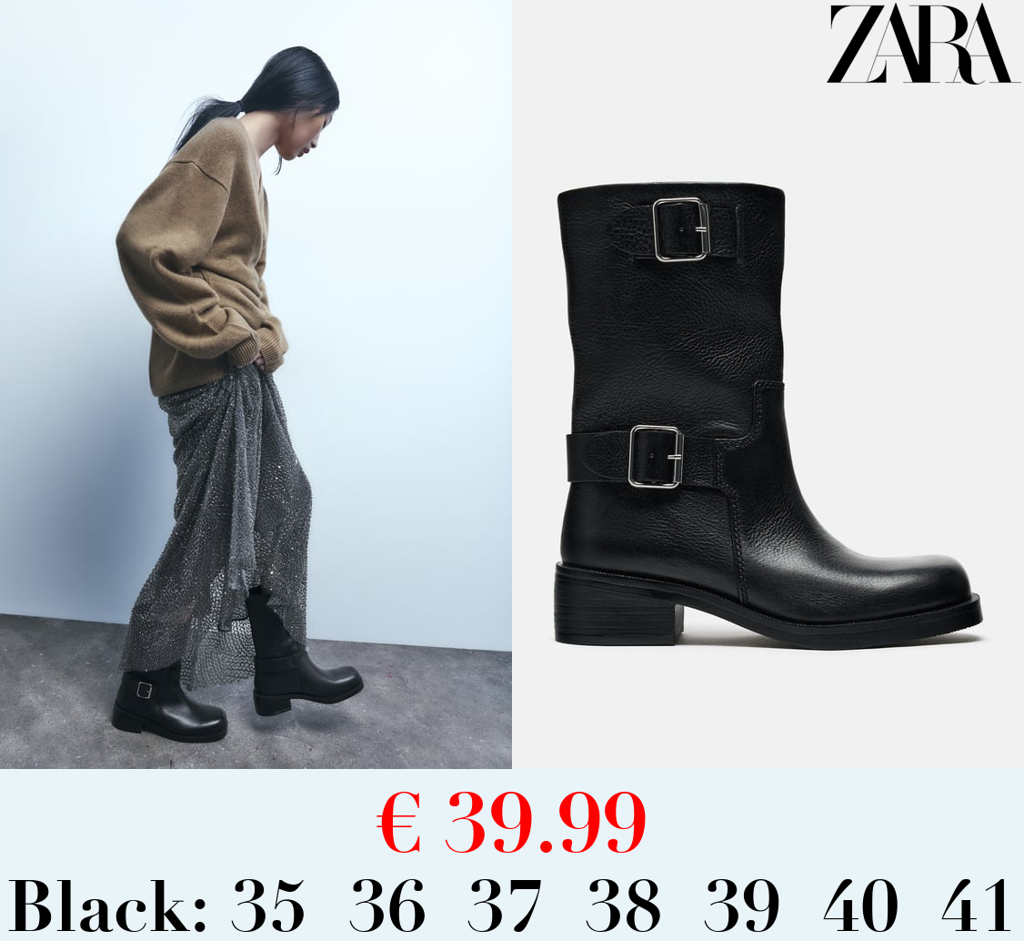 € 39.99 LEATHER ANKLE BOOTS WITH BUCKLES