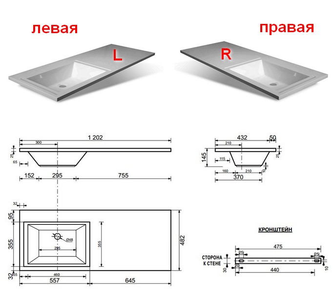 Размер раковины со столешницей 57 фото