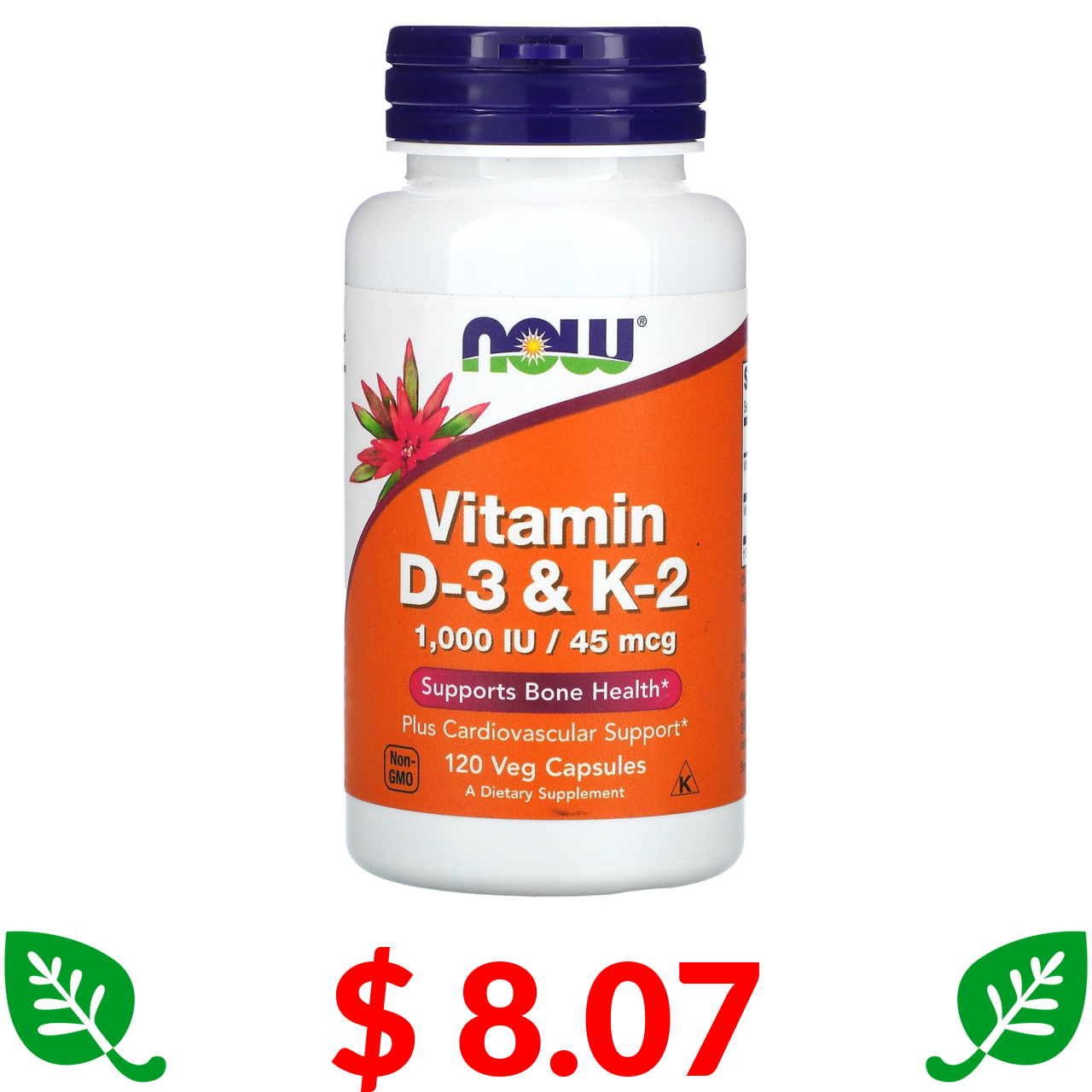 $ 8.07 NOW Foods, Vitamin D-3 & K-2, 120 Veg Capsules