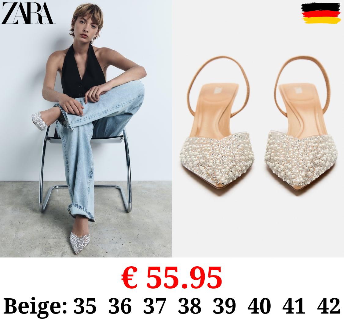 € 55.95 HIGH-HEEL SLINGBACK SHOES WITH FAUX PEARLS
