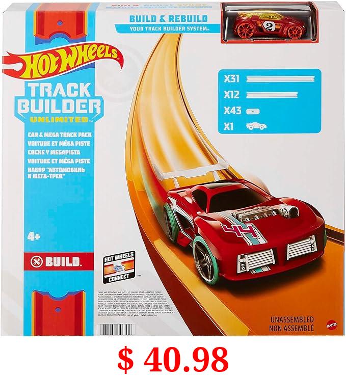 $ 40.98 Hot Wheels Car and Mega Track Pack with 40ft of Track, 43 Connectors and One 1:64 Scale Toy Car, Track Builder (Amazon Exclusive)
