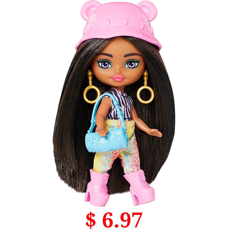 $ 6.97 Barbie Extra Mini Minis Travel Doll with Safari Fashion, Animal Print Outfit and Styling Accessories, Barbie Extra Fly Small Doll