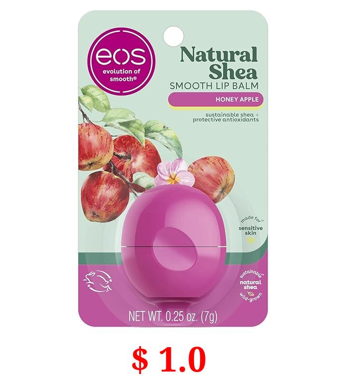 $ 1.0 eos Natural Shea Lip Balm- Honey Apple, All-Day Moisture, Made for Sensitive Skin, 0.25 oz