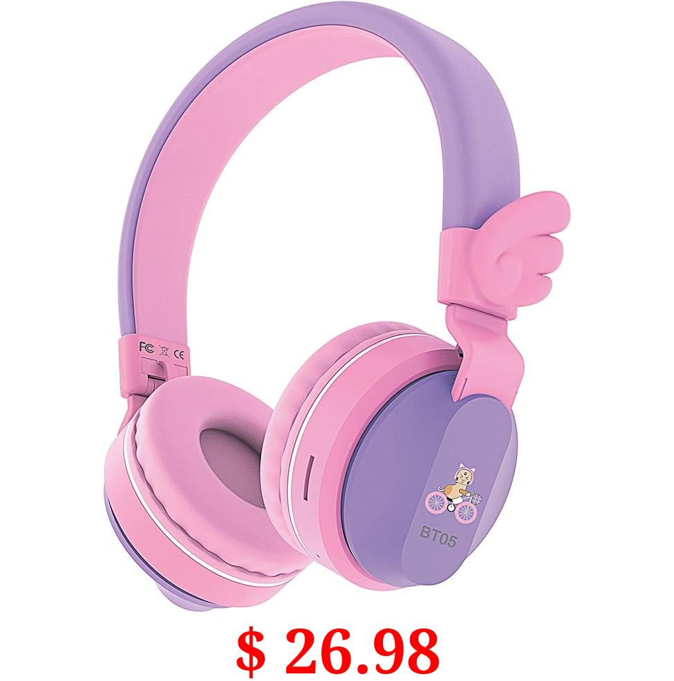 $ 26.98 Riwbox BT05 Bluetooth Kids Headphones Wireless Foldable Headset Over Ear with Volume Limited and Mic/TF Card Compatible for iPad/iPhone/Tablet (Purple&Pink)