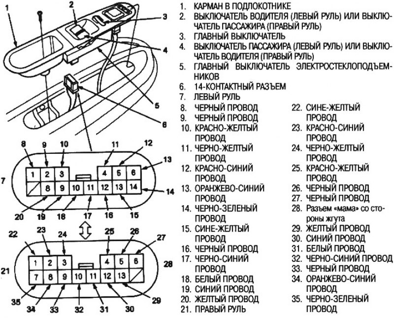 Распиновка контактов кнопки стеклоподъемников 145 фото