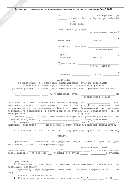 ое о взыскании индексации