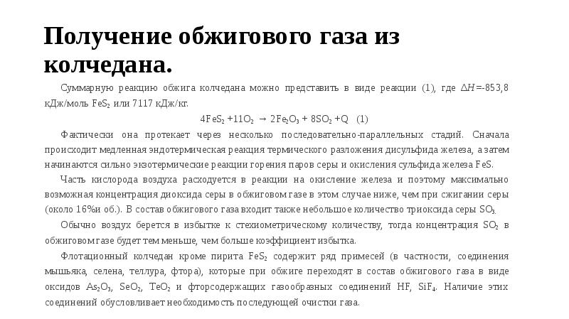 олучение колчедана