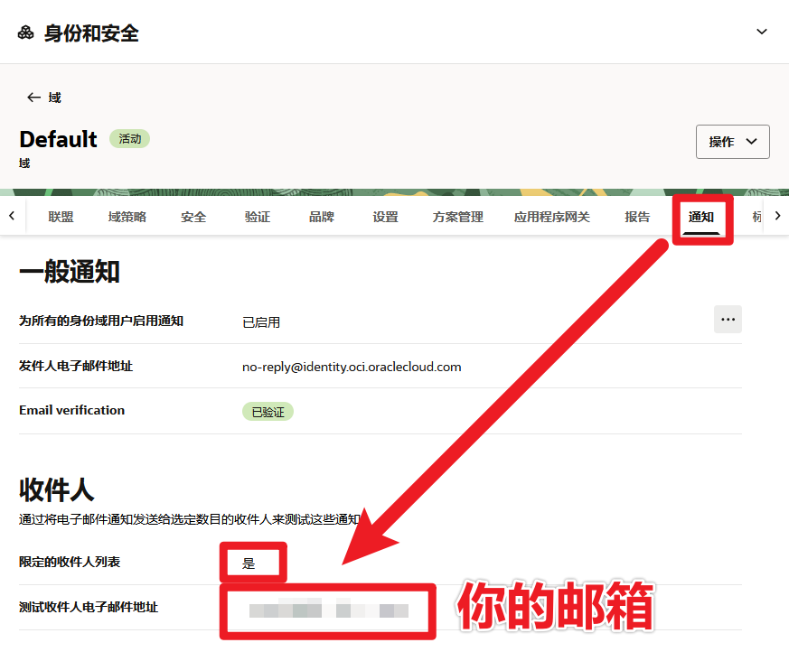 甲骨文三无账号的最后一道防丢号的底裤!域设置-通知的具体使用操作说明!