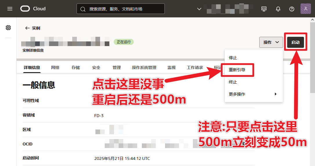 答:在控制台点击"重新引导"即可,还是会保持500M
