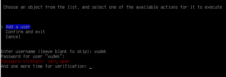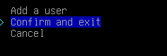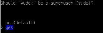 After setting up your password, you will be asked to give the user superuser rights. You need to choose yes. Then you need to choose Confirm and exit.