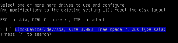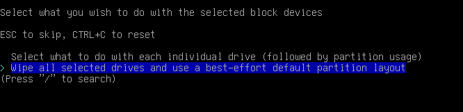 5. After setting up your region, you need to choose option Drives. In that guide installation is supposing that you have free SSD/HDD drive without any important data, because we will completely delete all the data. Next you need to choose Disk Layout and choosing options as shown below.