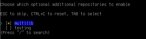 10. Choose Optional repositories, open it and tick multilib (also using SpaceBar)