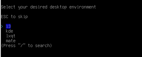 In my installation i will use i3-gaps as the enviroment, so i choose i3.