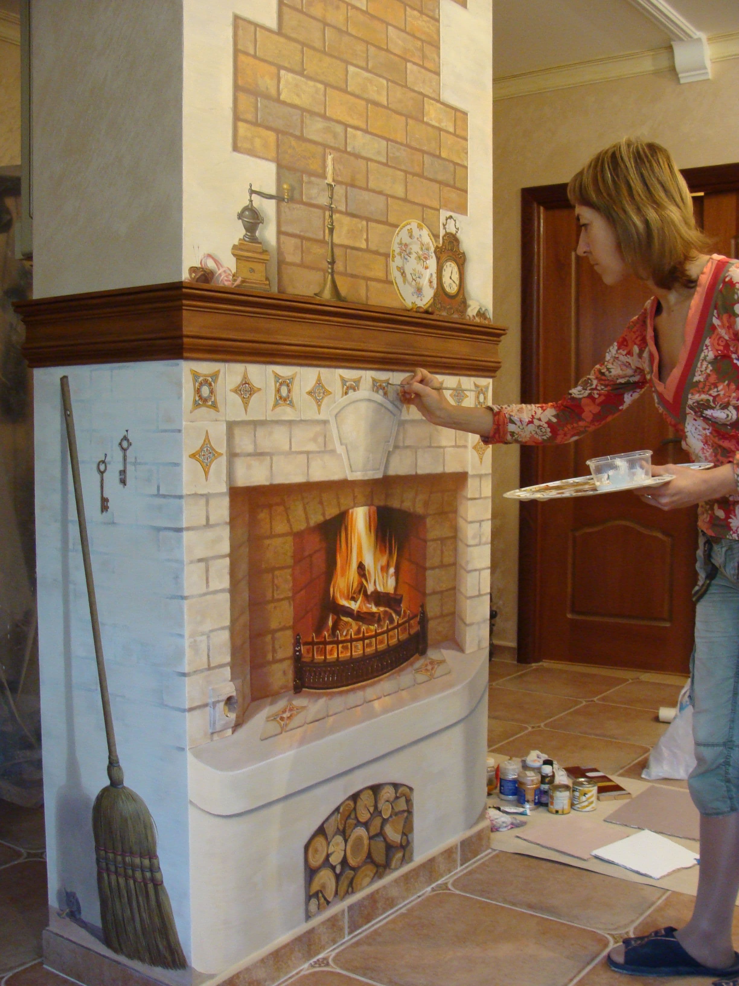 ото Росписи На Кирпичной Стене Внутри Дома