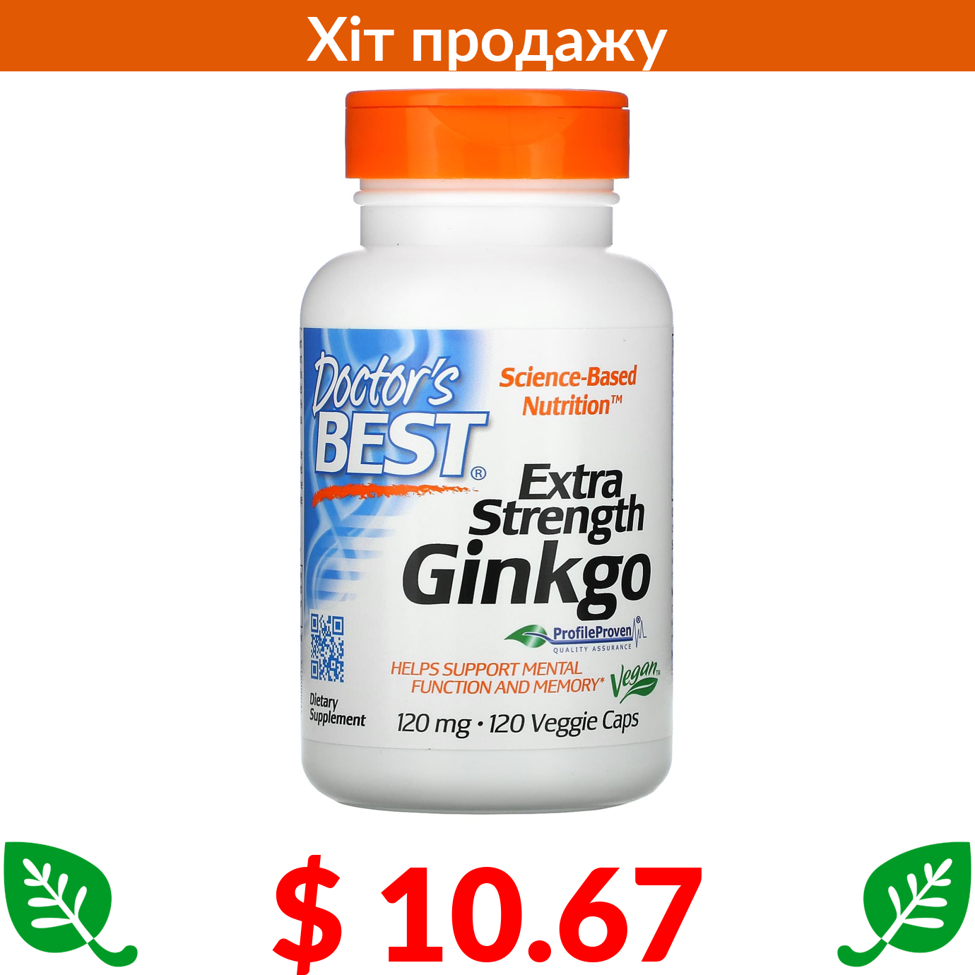 $ 10.67 Doctor's Best, гінкго білоба з підвищеною силою дії, 120 мг, 120 вегетаріанських капсул