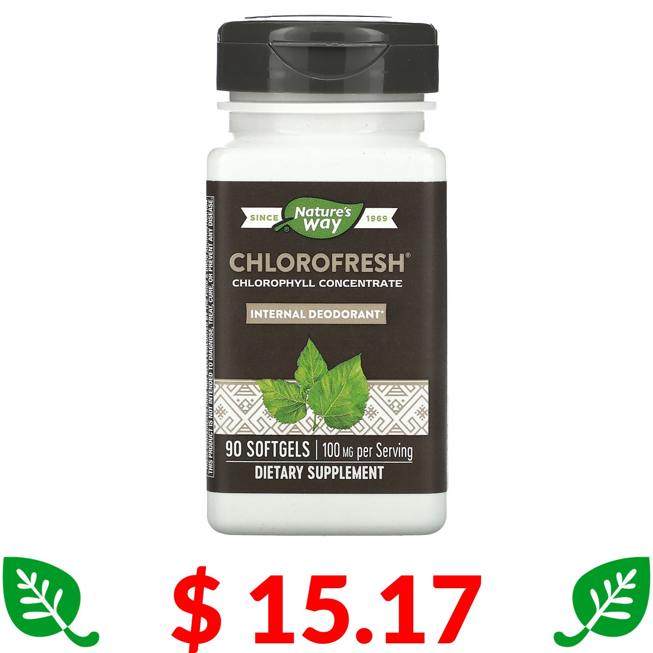 $ 15.17 Nature's Way, Chlorofresh, концентрований хлорофіл, 90 капсул