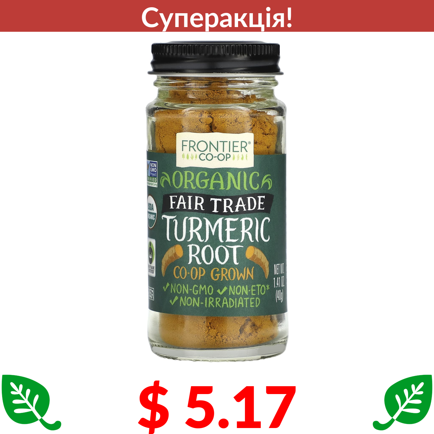 $ 5.17 Frontier Co-op, корінь органічної куркуми, 40 г (1,41 унції)