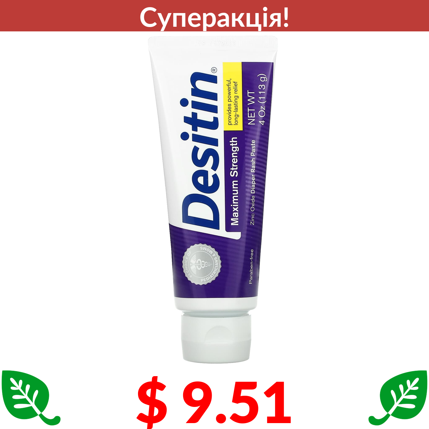 $ 9.51 Desitin, паста від роздратування шкіри під підгузками, сильнодіюча, 113 г (4 унцій)