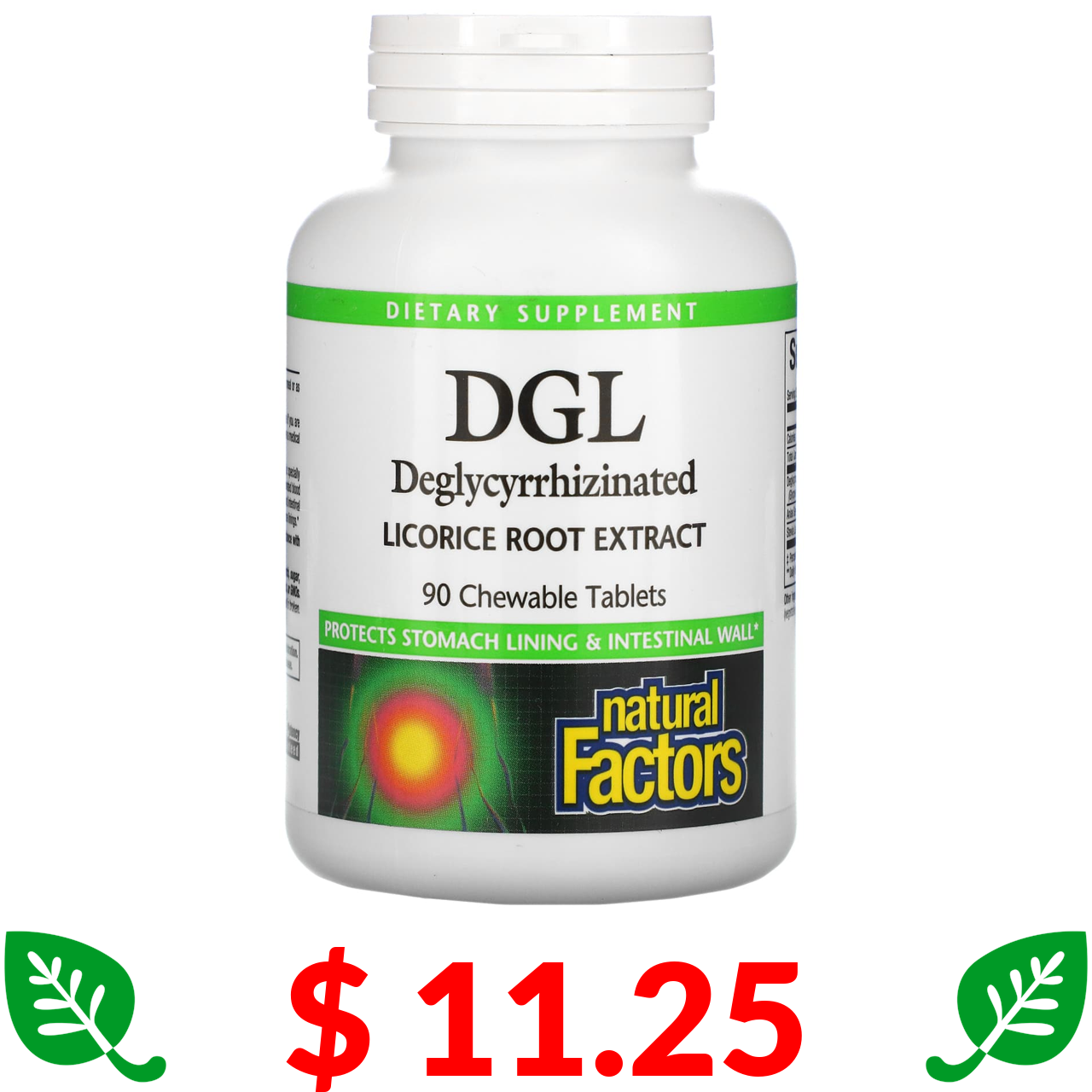 $ 11.25 Natural Factors, DGL, гліциризинат екстракту кореня солодки, 90 жувальних таблеток