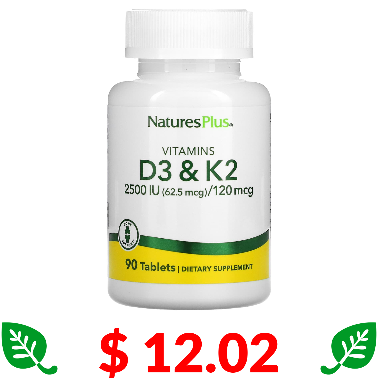 $ 12.02 Nature's Plus, вітаміни D3 і K2, 90 таблеток