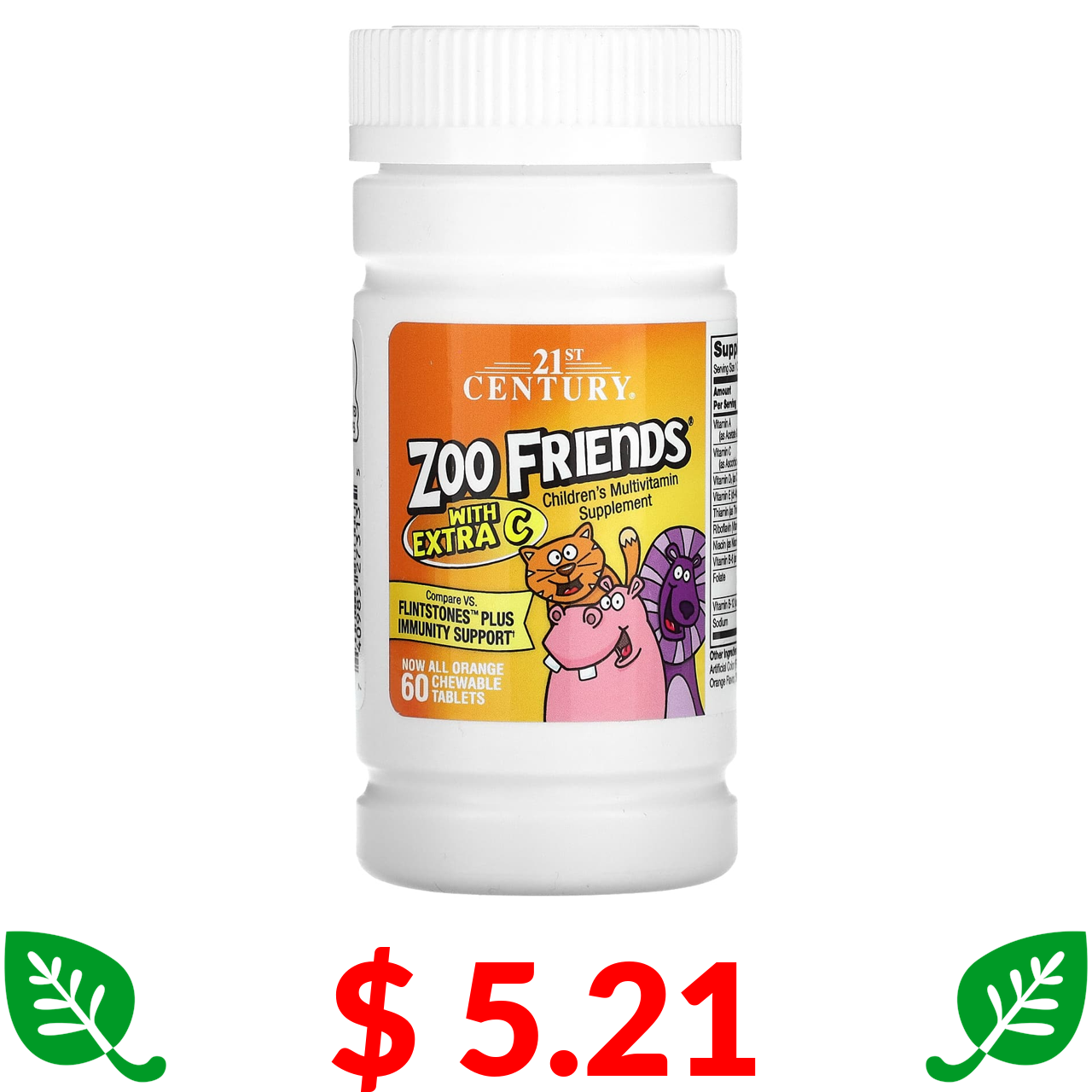 $ 5.21 21st Century, Zoo Friends з додаванням вітаміну C, апельсин, 60 жувальних таблеток