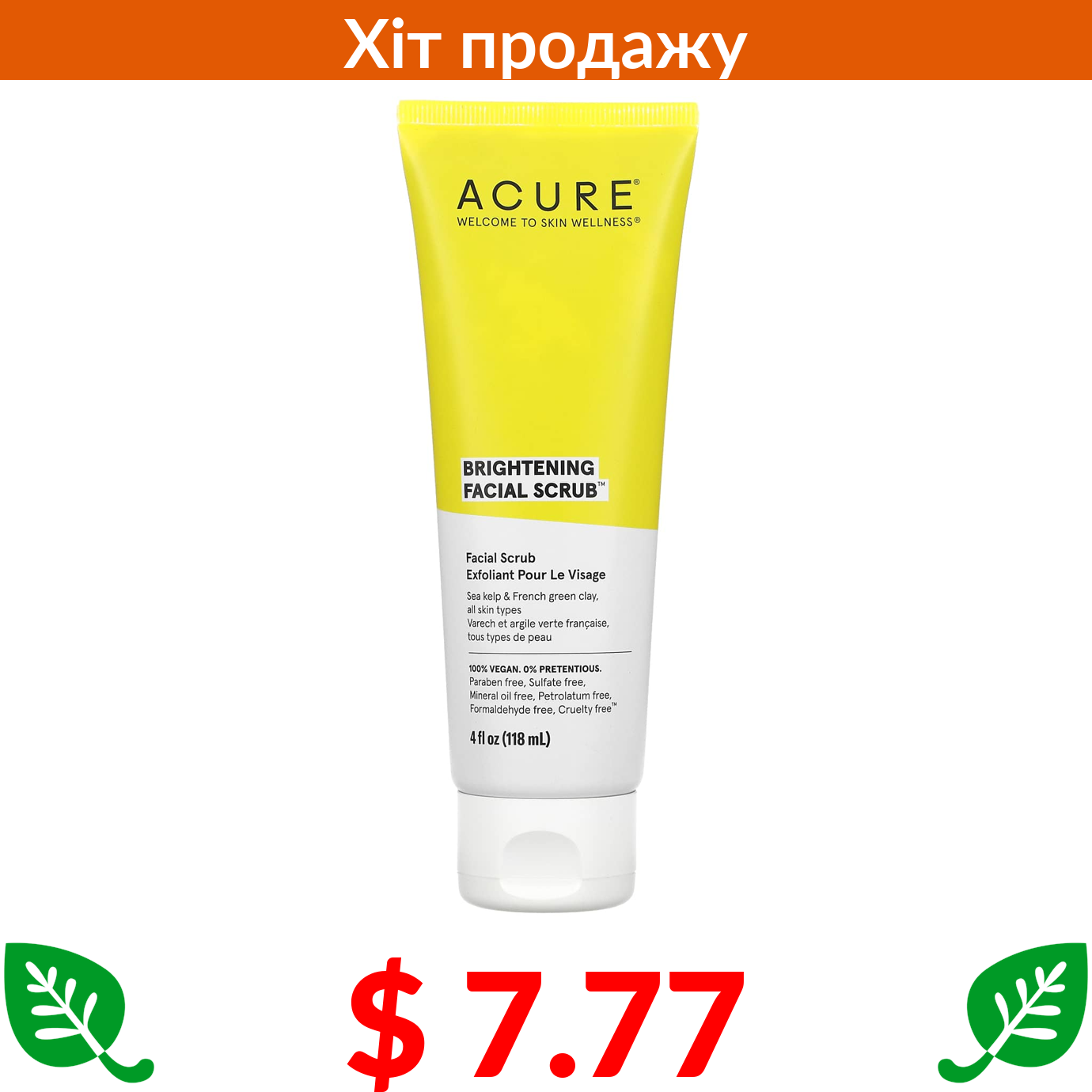 $ 7.77 ACURE, освітлювальний скраб для обличчя, 118 мл (4 рідк. унції)