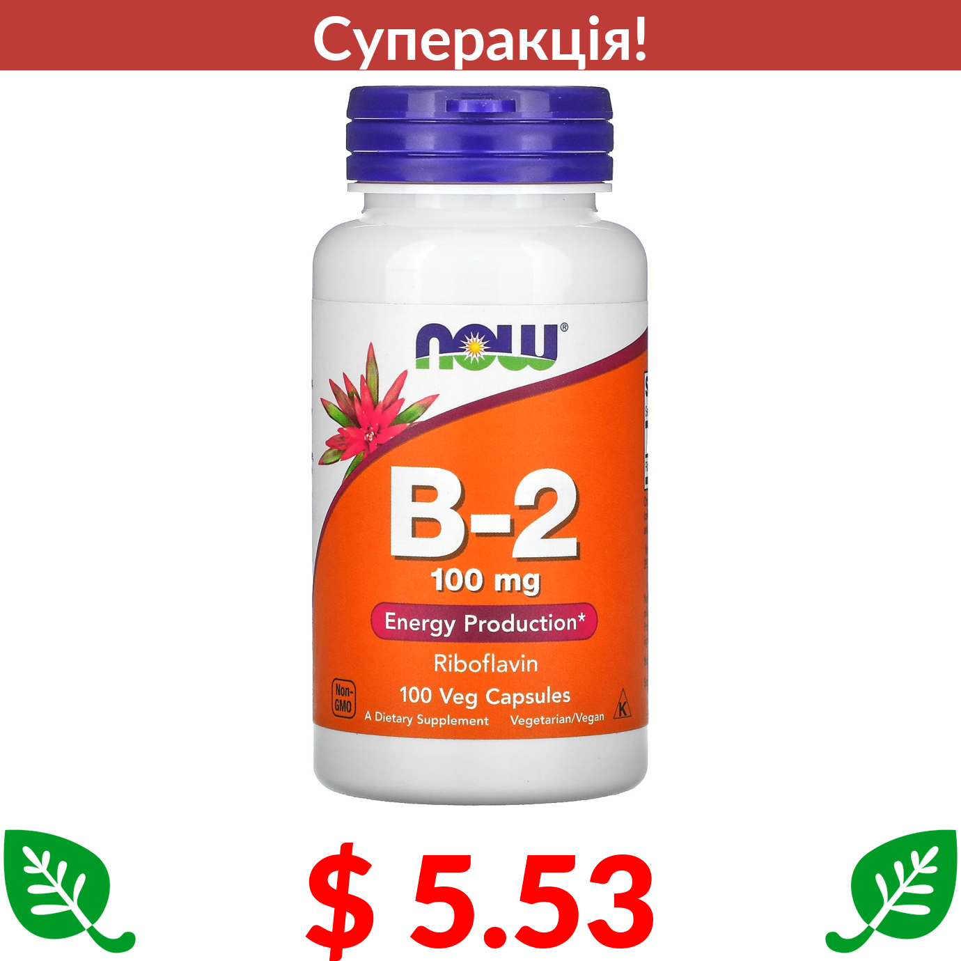 $ 5.53 Now Foods, вітамін B2, 100 мг, 100 вегетаріанських капсул