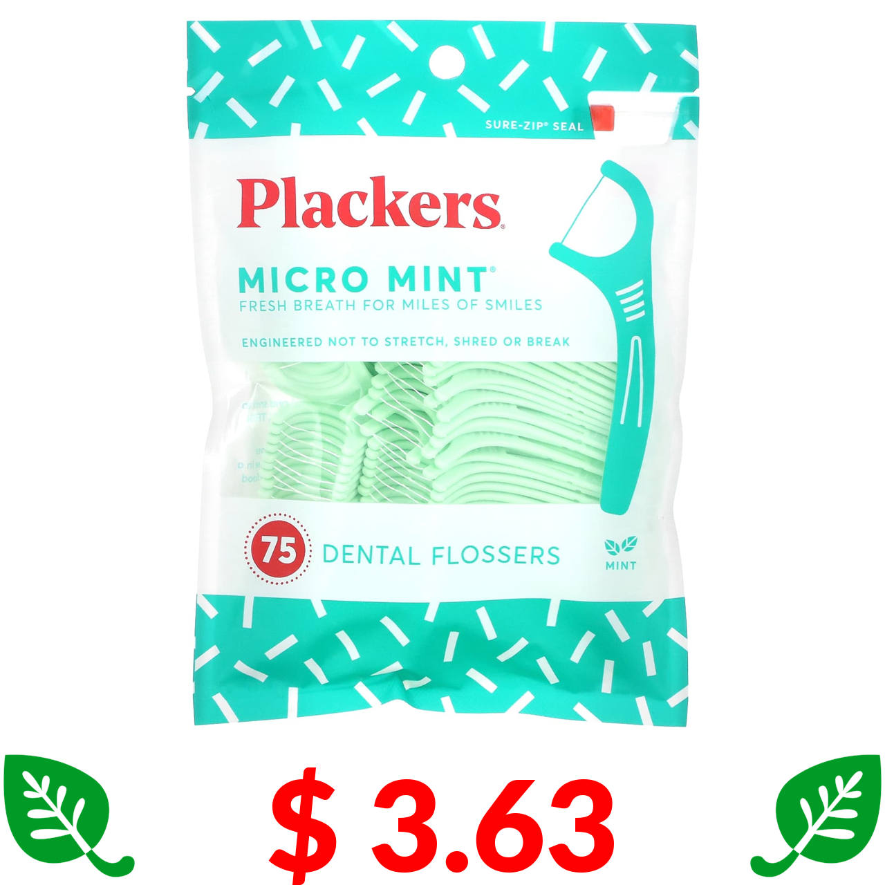 $ 3.63 Plackers, Micro Mint, зубочистки з ниткою для задніх зубів, м’ята, 75 шт.