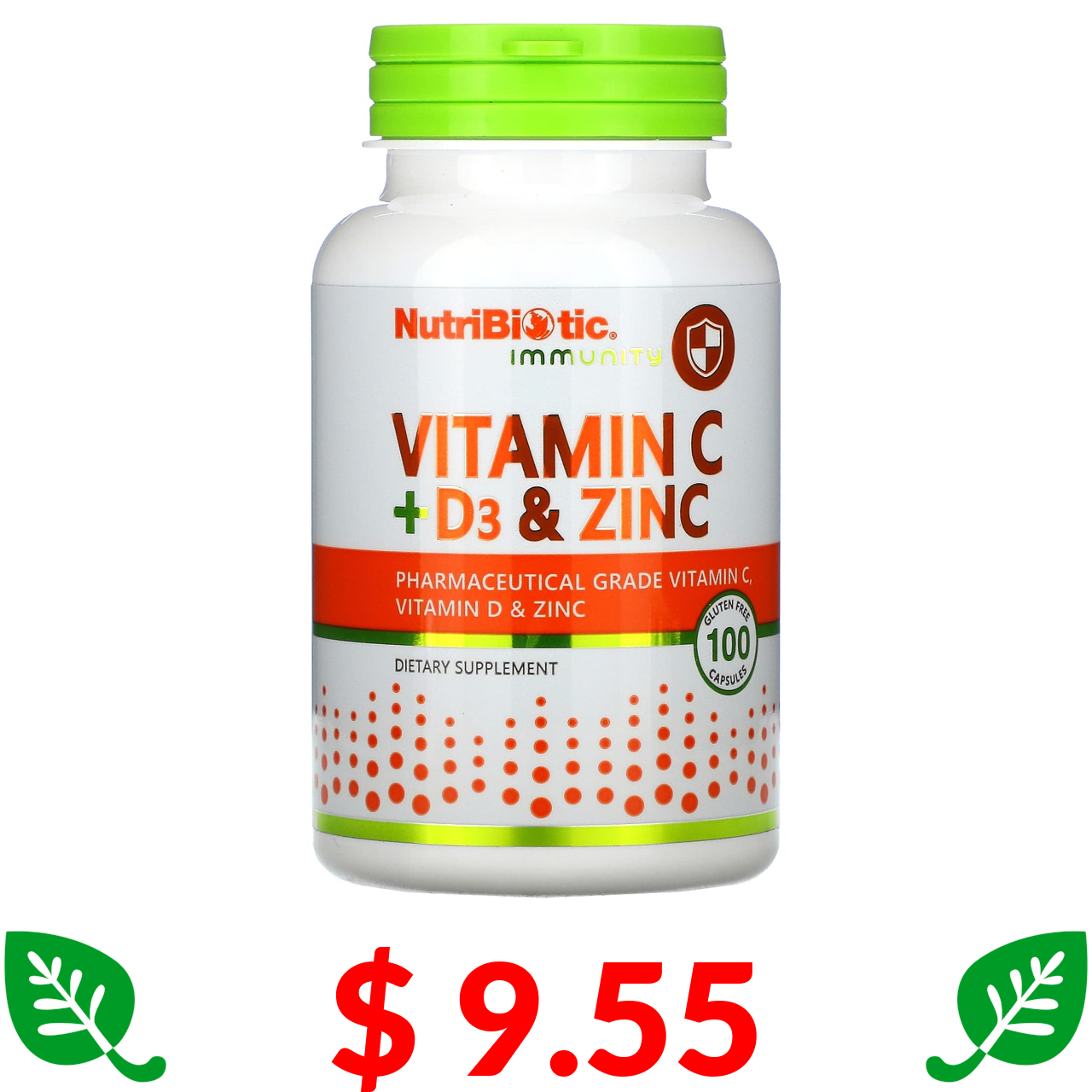 $ 9.55 NutriBiotic, Immunity, вітаміни C + D3 та цинк, 100 капсул