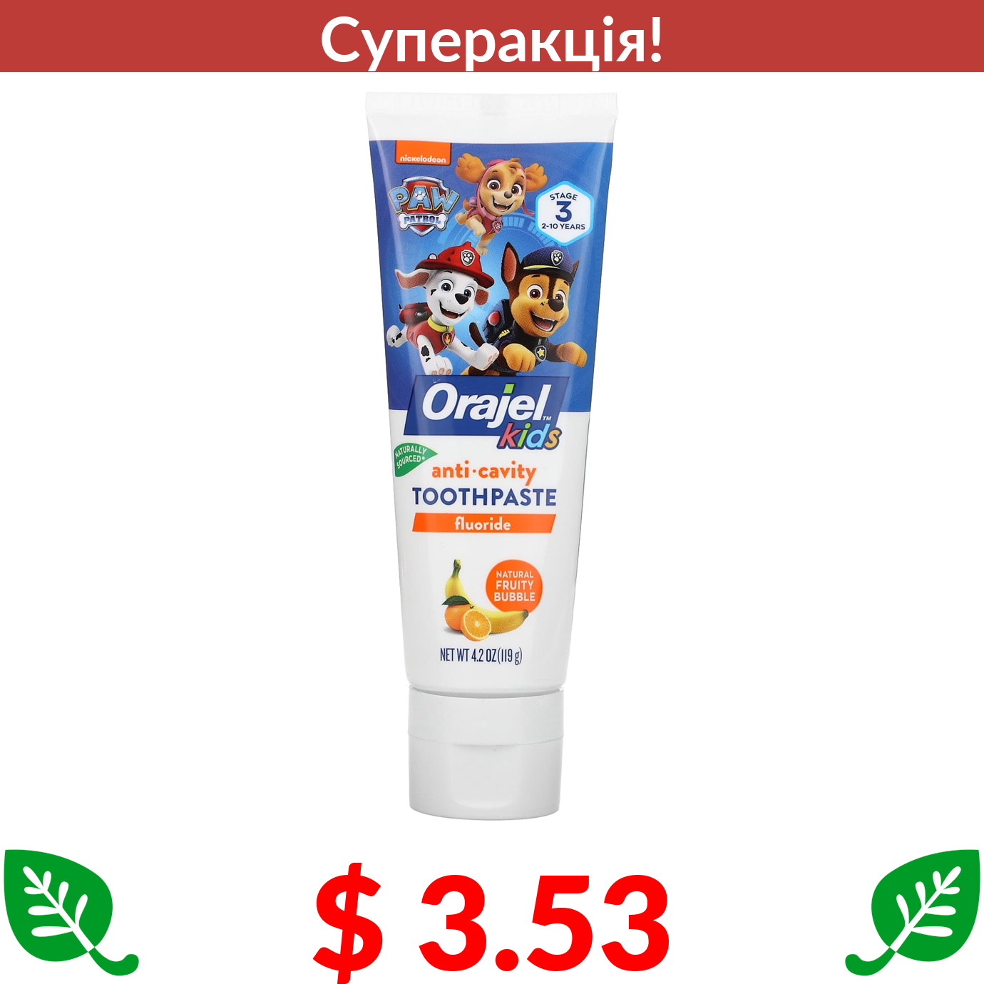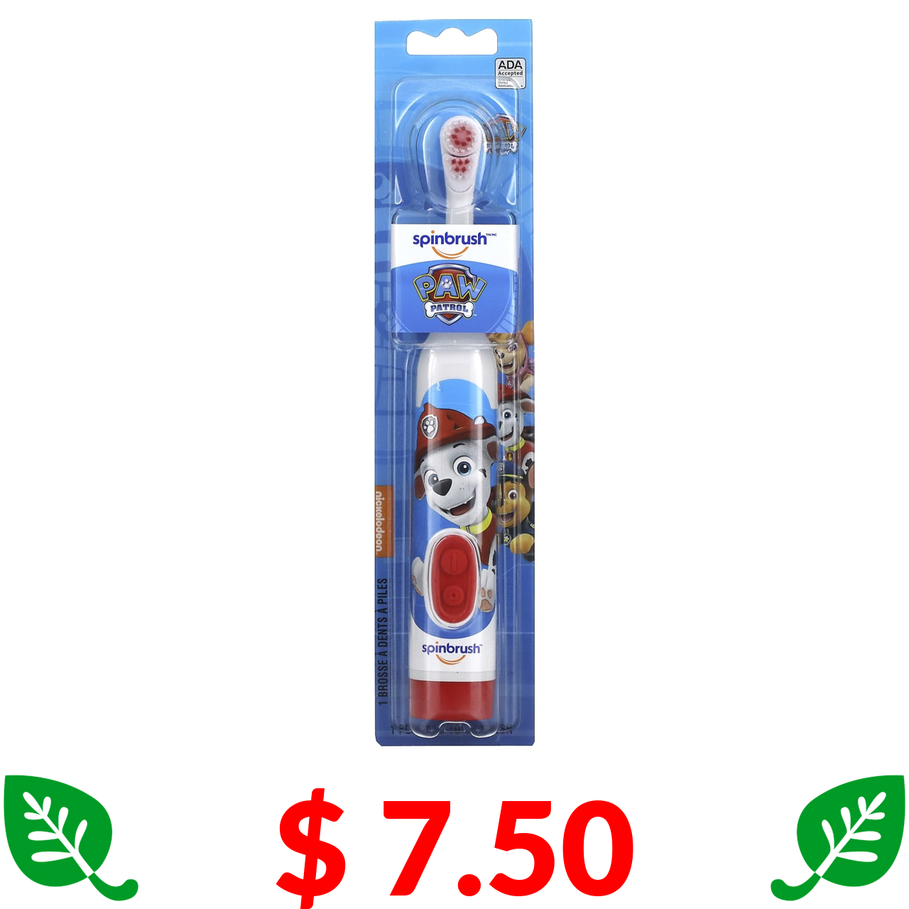 $ 7.50 Arm & Hammer, Kid's Spinbrush, «Щенячий патруль», м'яка, 1 зубна щітка на батарейках