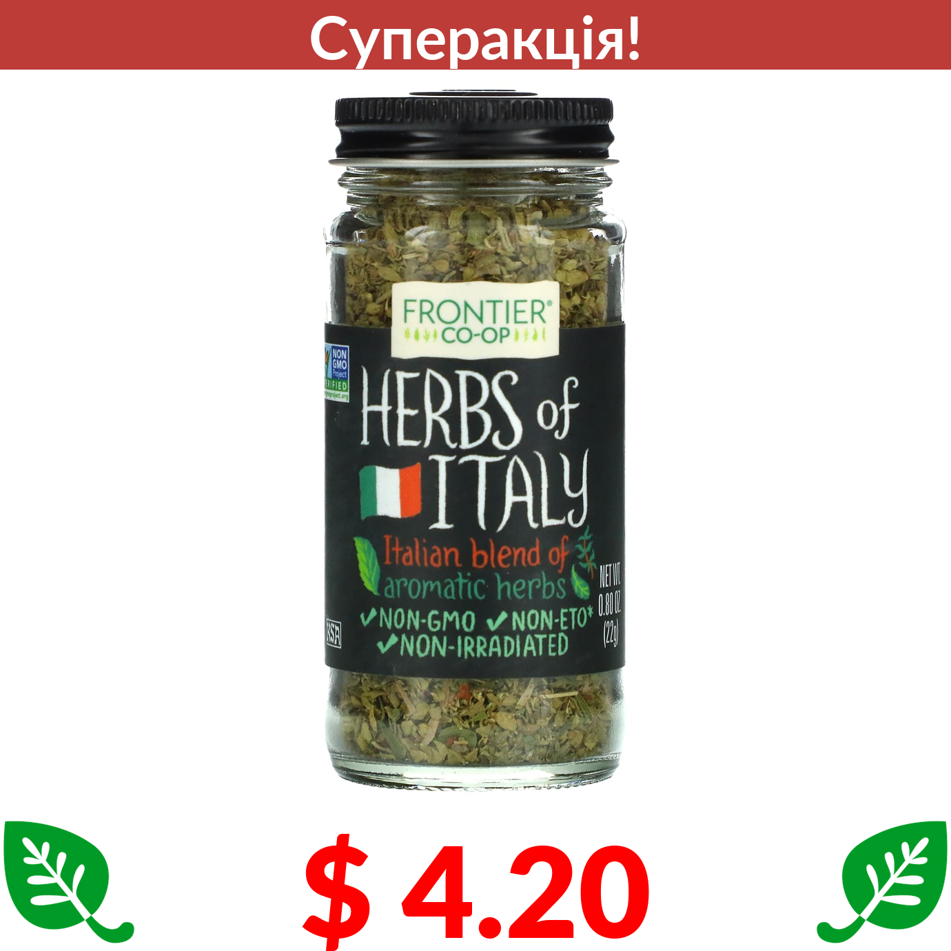 $ 4.20 Frontier Co-op, Herbs of Italy, Italian Blend of Aromatic Herbs, 0.80 oz (22 g)