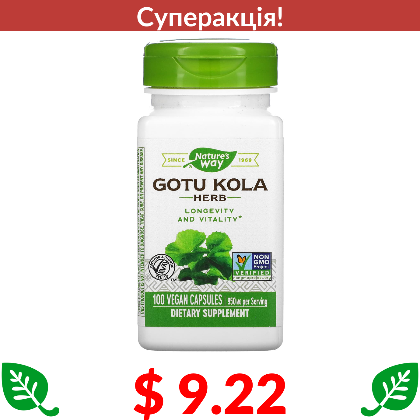 $ 9.22 Nature's Way, готу кола, 475 мг, 100 веганських капсул
