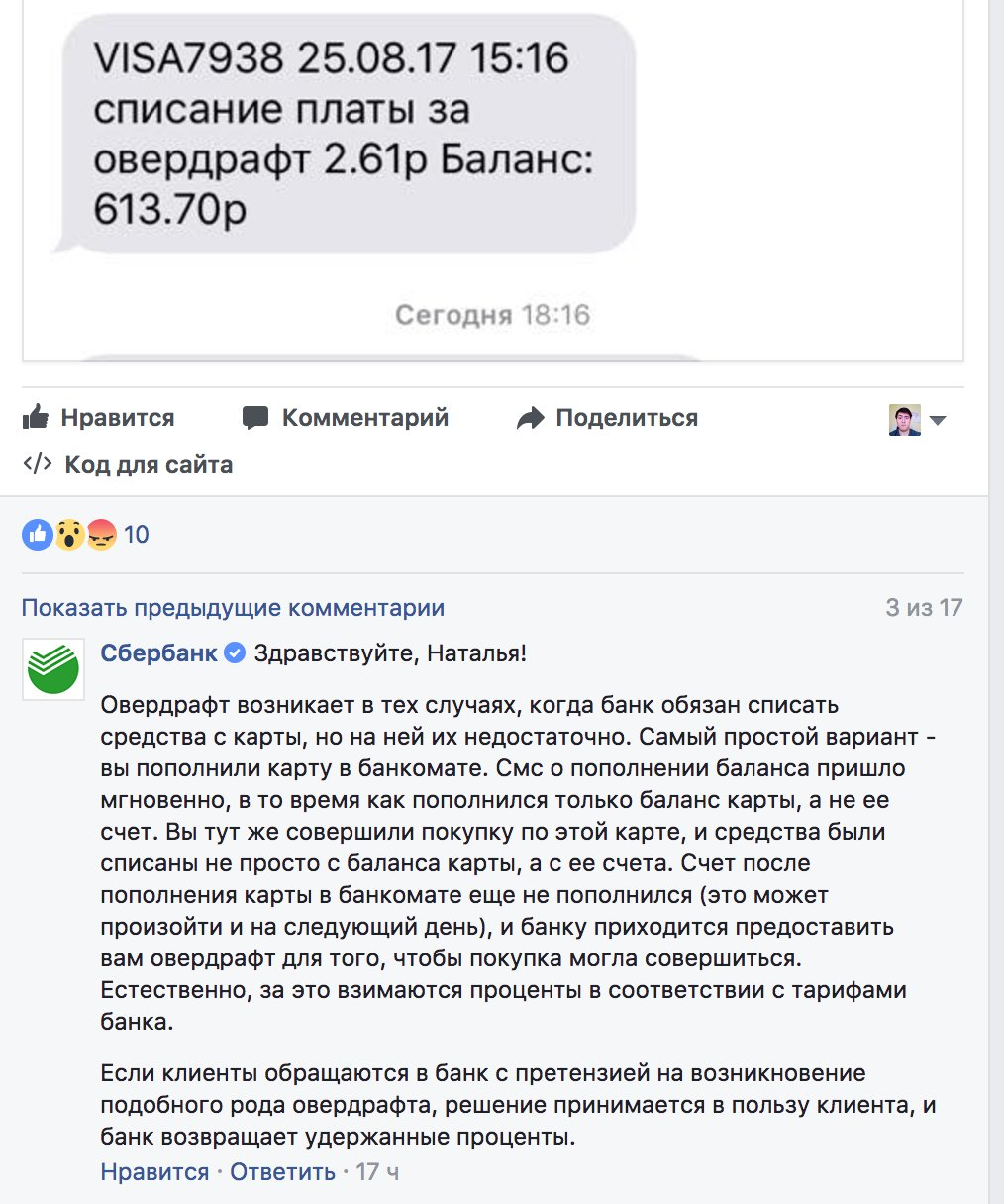 Овердрафт Сбербанка
