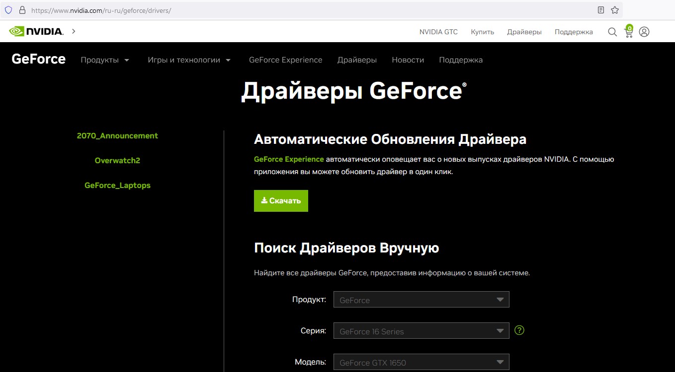 ожение для драйверов видеокарты