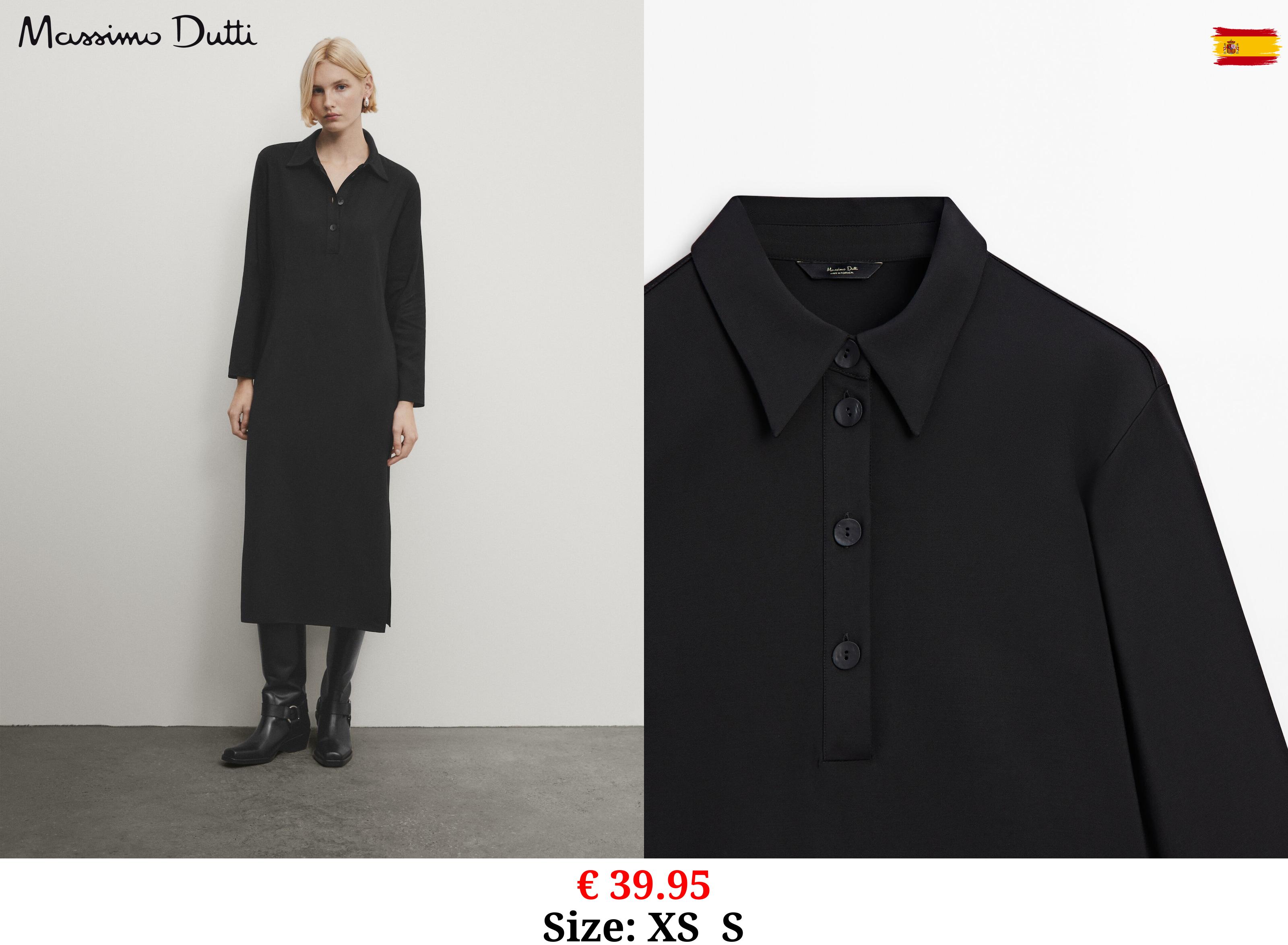 € 39.95 Polo collar midi dress with slit BLACK