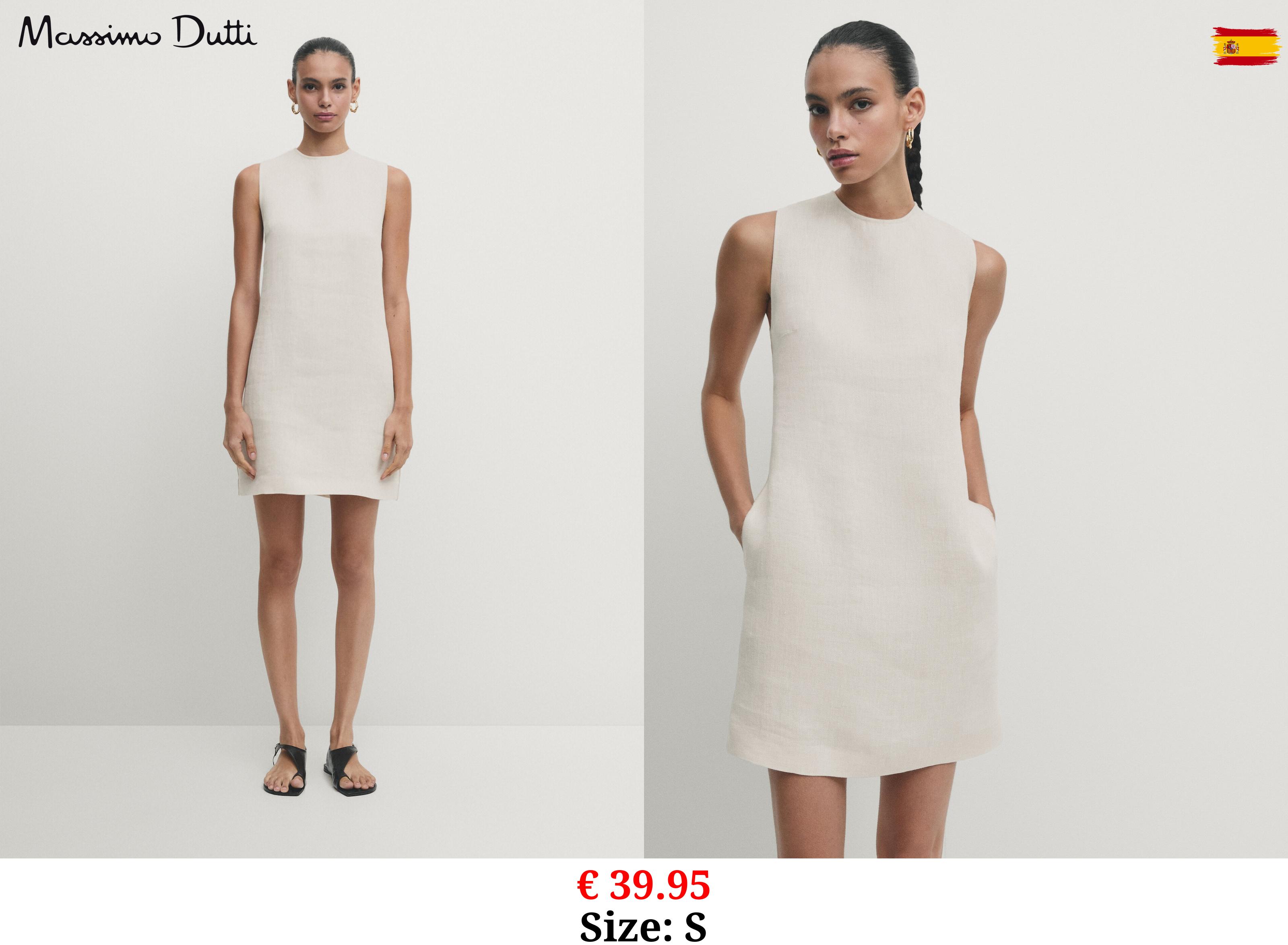 € 39.95 Short sleeveless 100% linen dress CREAM