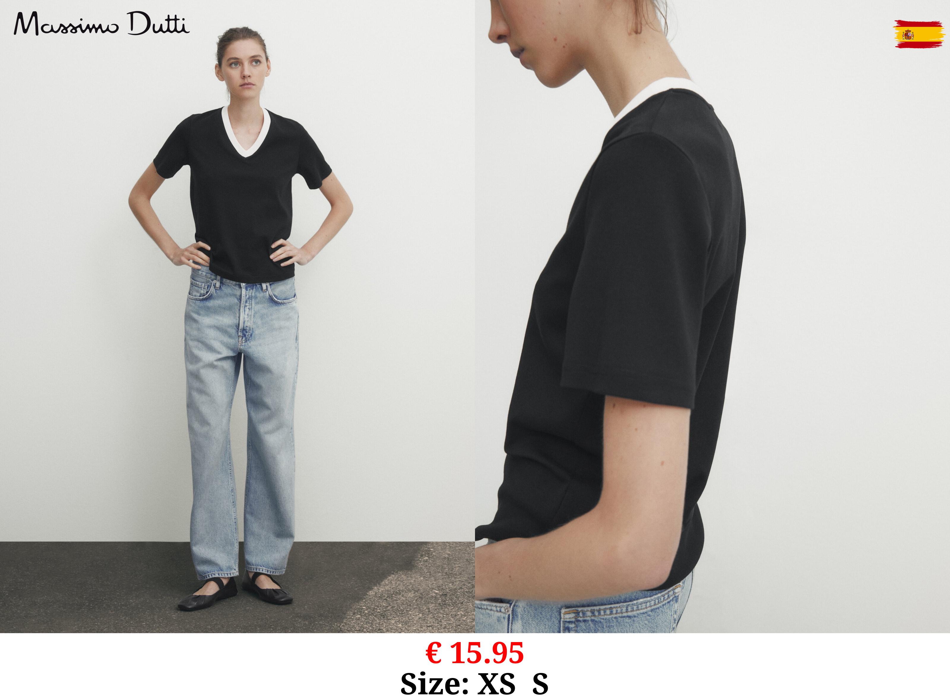 € 15.95 100% cotton T-shirt with contrast V-neck BLACK