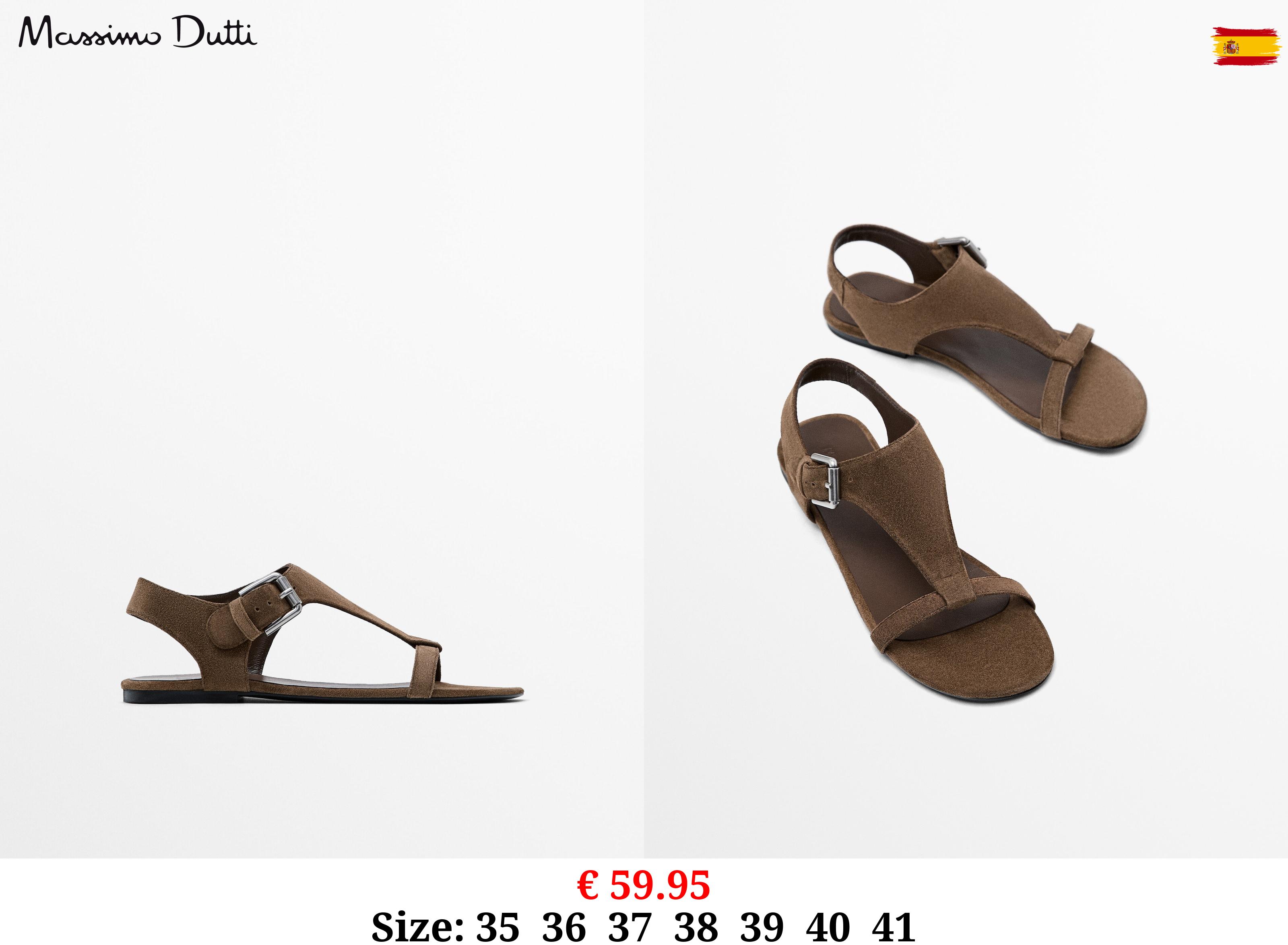 € 59.95 Flat split leather sandals with buckle BROWN