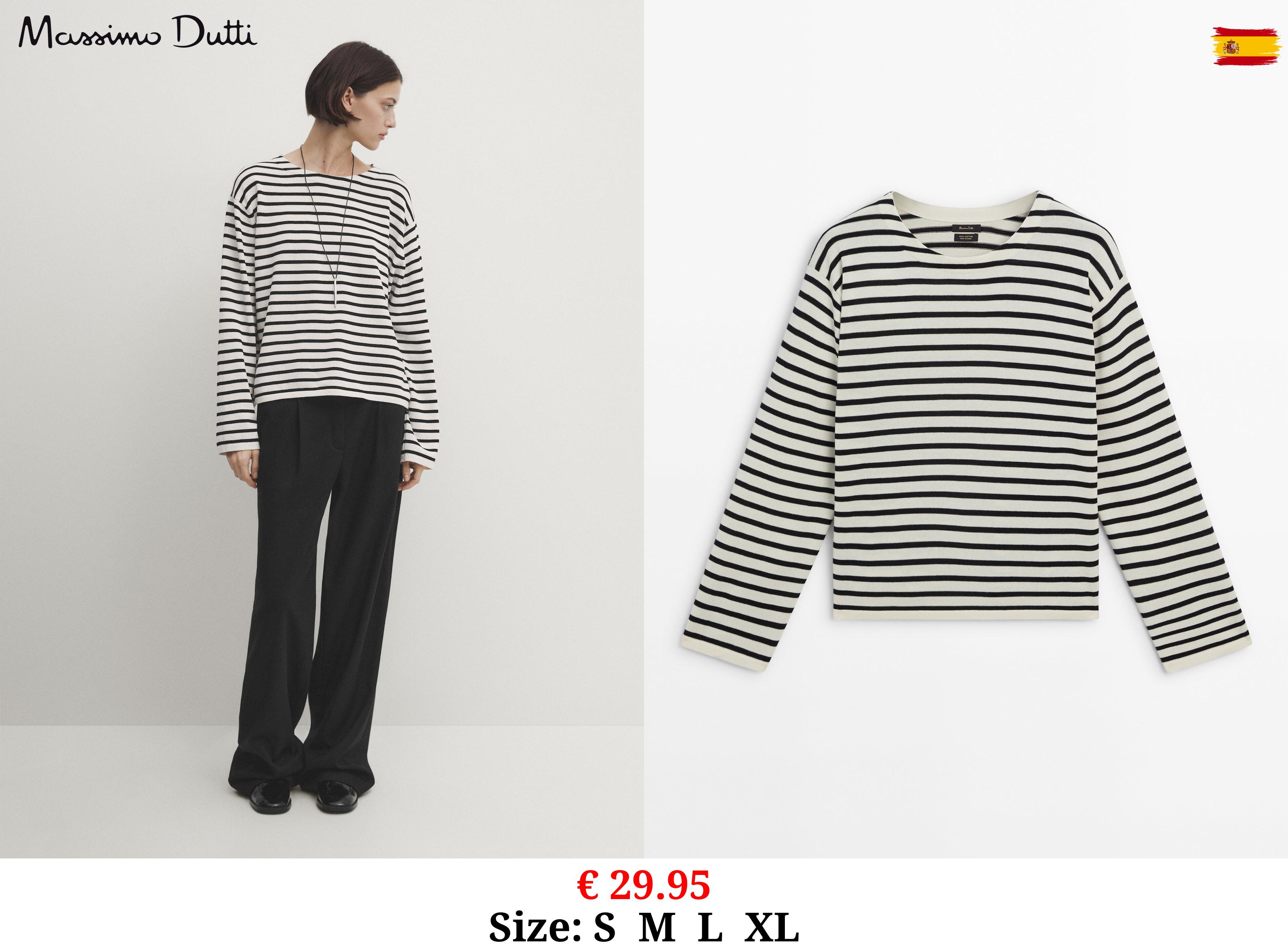 € 49.95 Striped knit co-ord T-shirt with long sleeves BLACK