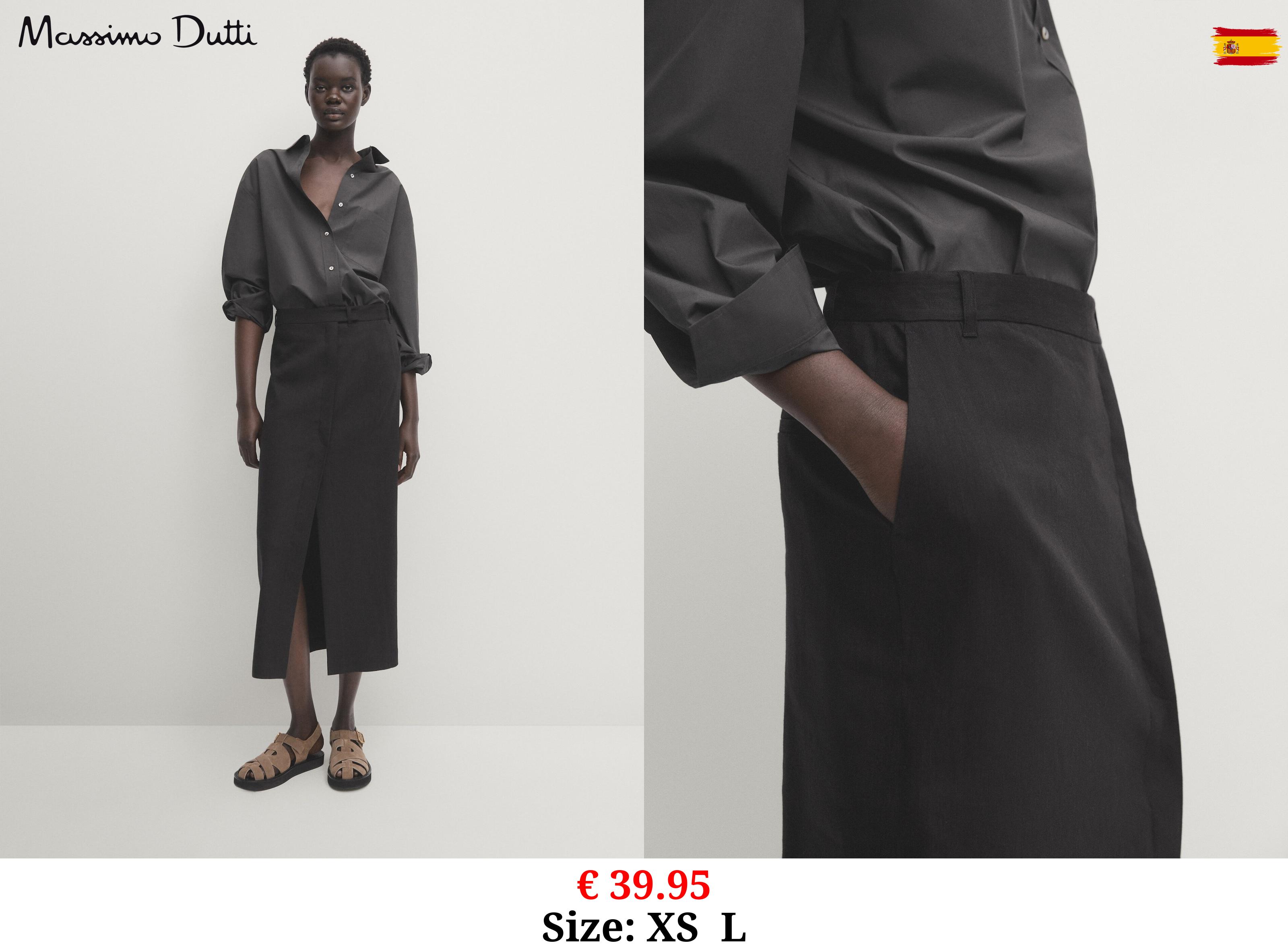 € 39.95 Straight linen blend skirt BLACK