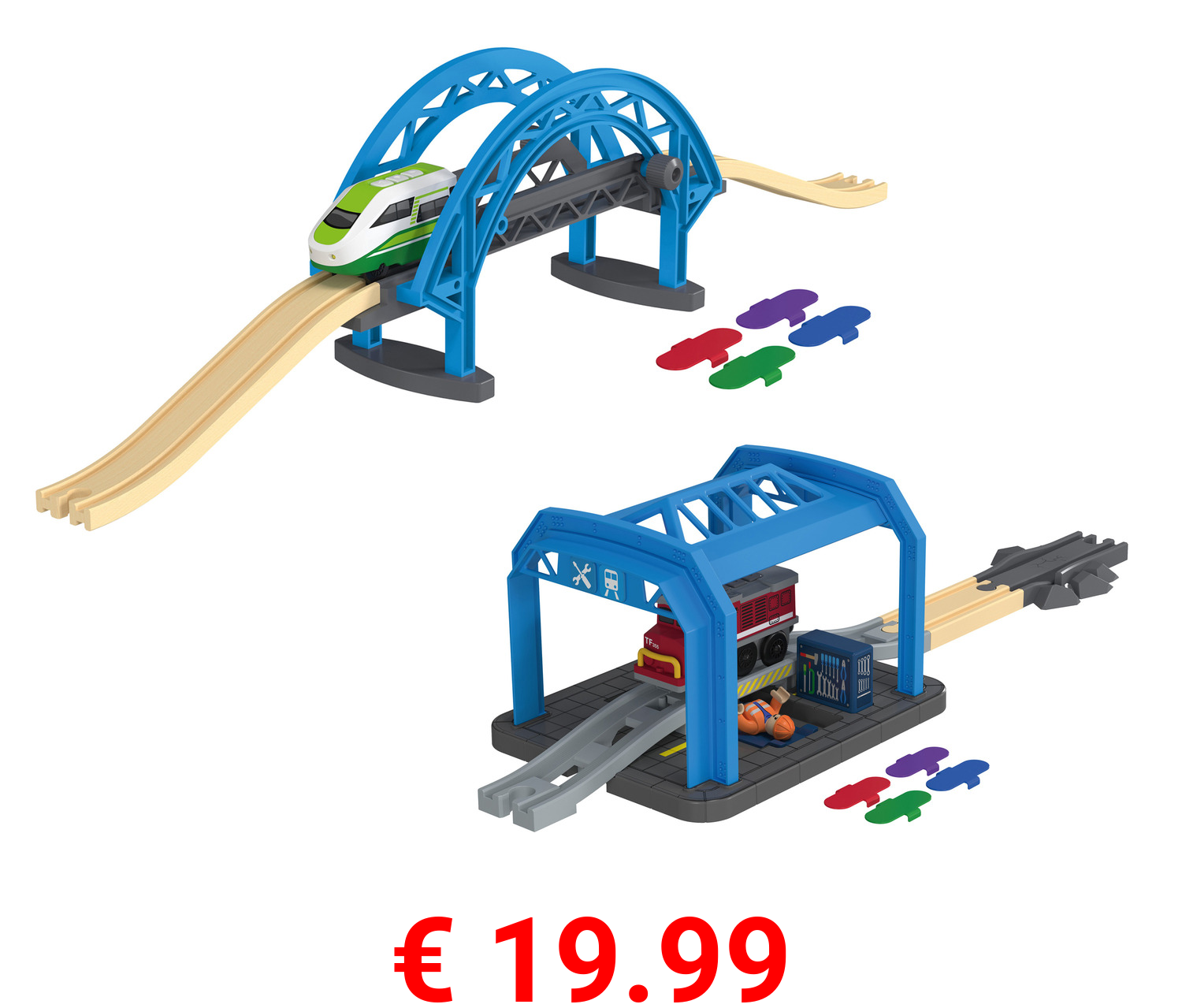 € 19.99 Playtive Holz Eisenbahn Werkstatt / Brücke, mit Farbtechnologie