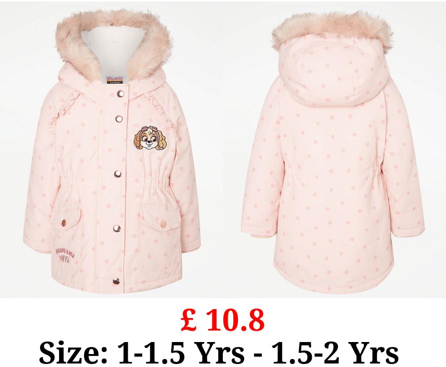 £ 10.8 PAW Patrol Pink Spot Faux Fur Trim Parka Coat