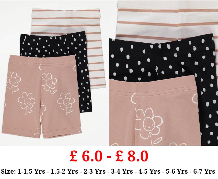 £ 6.0 - £ 8.0 Neutral Floral Spot Stripe Cycling Shorts 3 Pack