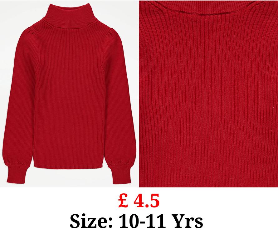 £ 4.5 Red Knitted Funnel Neck Jumper