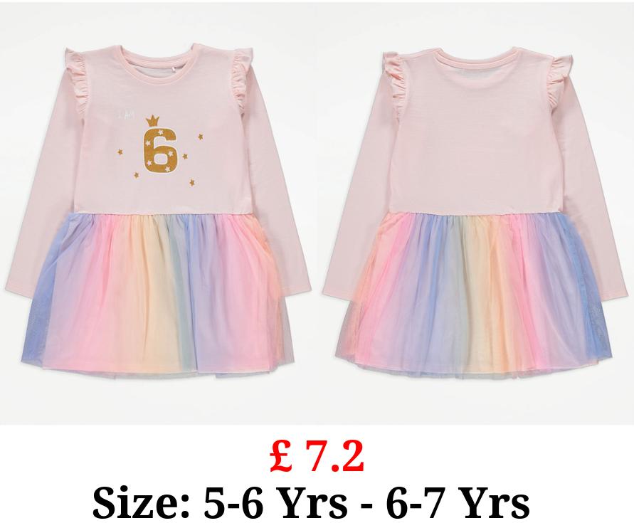 £ 7.2 Pink Rainbow I Am 6 Birthday Tutu Dress