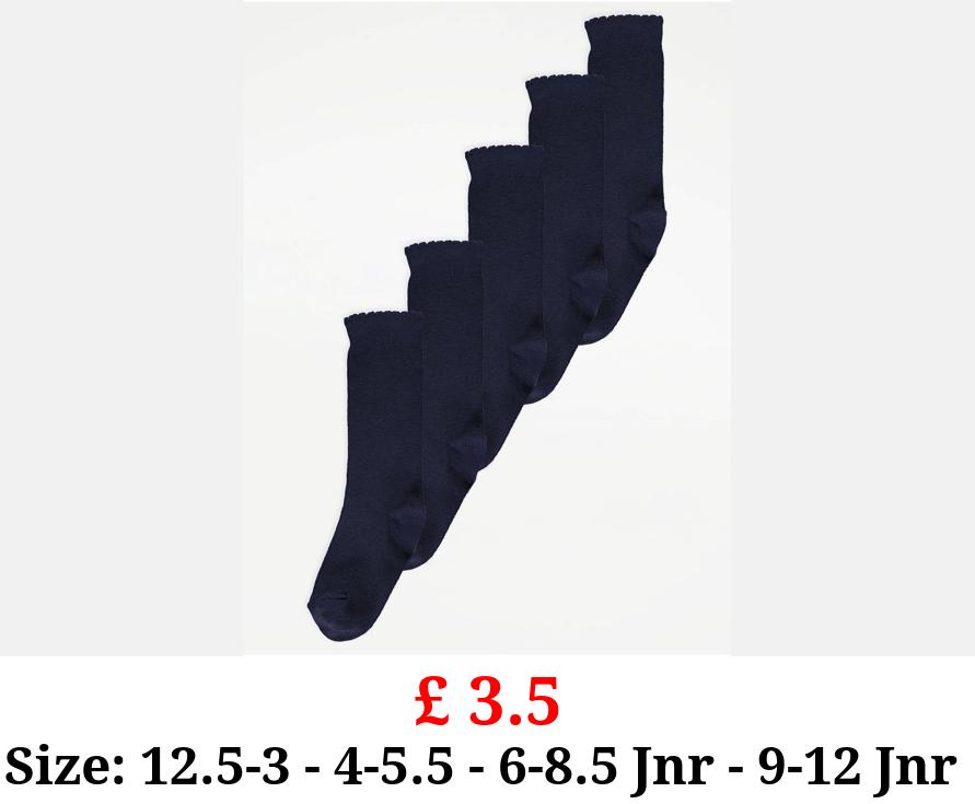£ 3.5 Navy Picot Trim Knee High Socks 5 Pack
